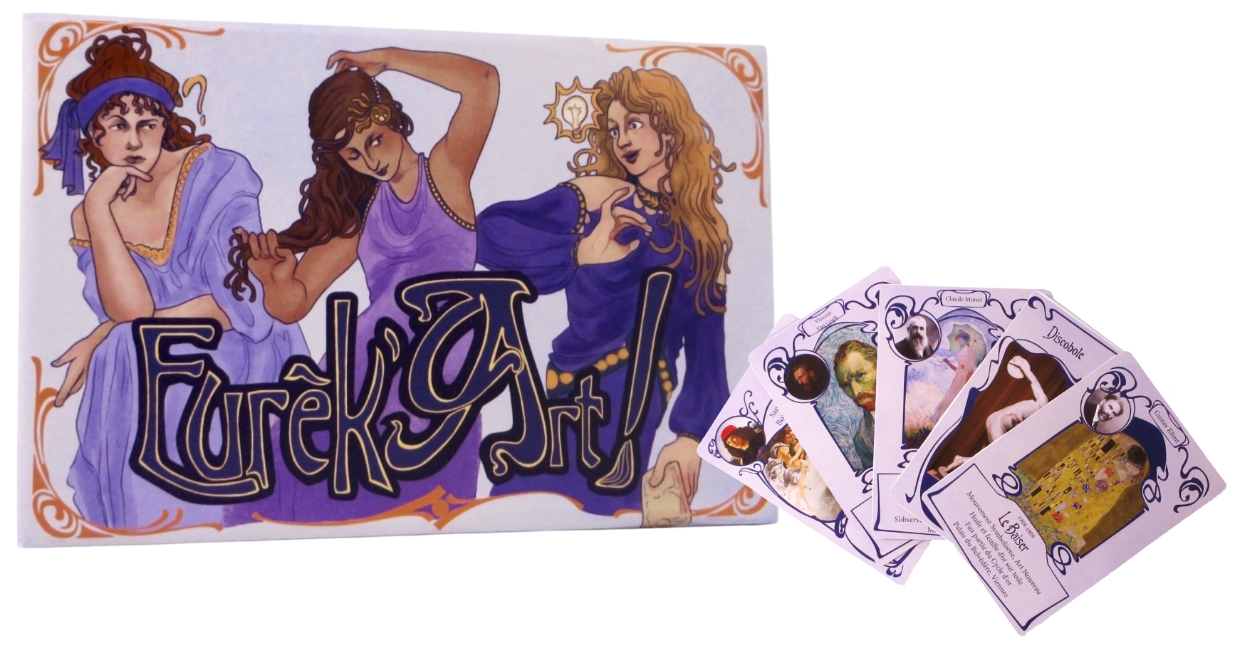 Eurêk’Art is a multiplayer couch card game where players embody iconic art works such as paintings or sculptures. Guided by a designated game master who knows the piece thanks to the card, the other players must guess which famous painting or renowned sculpture they are recreating in a limited time.